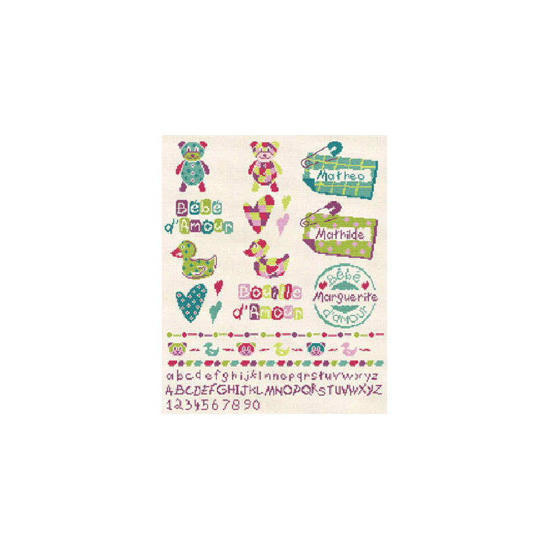 L'article 'LiliPoints, Grille petits motifs enfants (B010)' fait partie de notre assortiment depuis le 14 avril 2008. LiliPoints nous propose une très jolie gamme moderne de points de croix comptés, faciles à réaliser sur des thèmes toujours actuels - mariages- naissance - fêtes - Noël. Détail important: la créatrice nous conseille souvent dans ces fiches de réaliser la broderie 1 fil sur 1 fil lorsque les modèles ont plus de 150 points de large ou de haut. A vous de choisir ainsi la taille du résultat car en utilisant la trame standard 5.5 points/cm, les broderies sont parfois un peu grandes pour les monter en cadre, et alors nous conseillons de les monter sur un coussin (lorsqu'ils s'agit notamment de broderie à thème - amitié - mariage). Fiche technique : points de croix - peu de teintes utilisées dans les cotons - peu de points arrières. Les accessoires proposés sont souvent compris avec la fiche (coeurs en nacre - boutons).