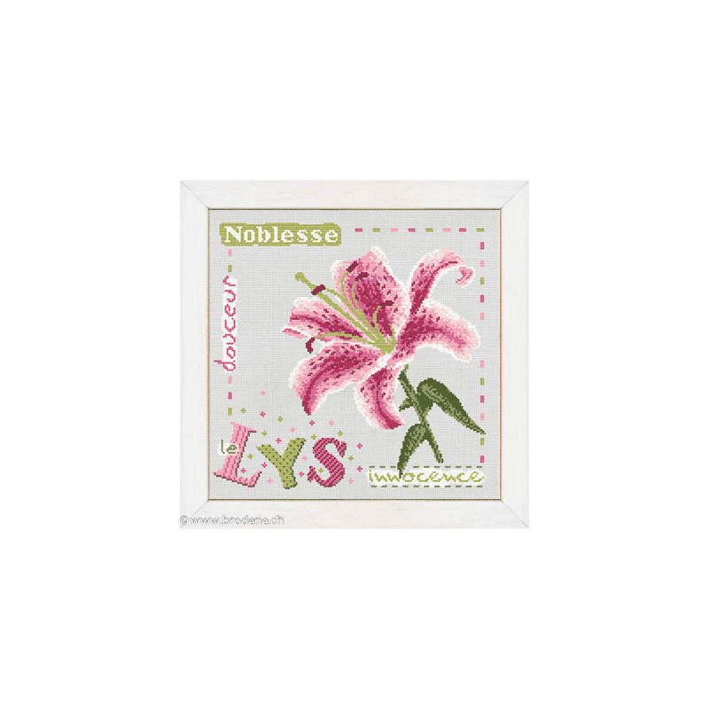 L'article 'LiliPoints, Grille Côté jardin - Lys (J005)' fait partie de notre assortiment depuis le 4 septembre 2014. LiliPoints nous propose une très jolie gamme moderne de points de croix comptés, faciles à réaliser sur des thèmes toujours actuels - mariages- naissance - fêtes - Noël. Détail important: la créatrice nous conseille souvent dans ces fiches de réaliser la broderie 1 fil sur 1 fil lorsque les modèles ont plus de 150 points de large ou de haut. A vous de choisir ainsi la taille du résultat car en utilisant la trame standard 5.5 points/cm, les broderies sont parfois un peu grandes pour les monter en cadre, et alors nous conseillons de les monter sur un coussin (lorsqu'ils s'agit notamment de broderie à thème - amitié - mariage). Fiche technique : points de croix - peu de teintes utilisées dans les cotons - peu de points arrières. Les accessoires proposés sont souvent compris avec la fiche (coeurs en nacre - boutons).