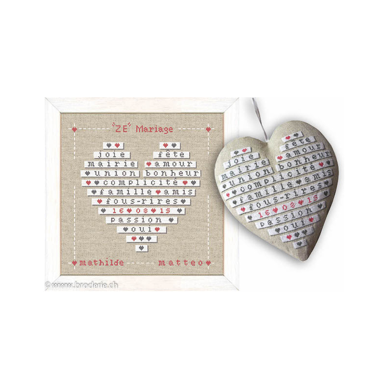 L'article 'LiliPoints, Grille "Ze" mariage (M015)' fait partie de notre assortiment depuis le 10 mars 2015. LiliPoints nous propose une très jolie gamme moderne de points de croix comptés, faciles à réaliser sur des thèmes toujours actuels - mariages- naissance - fêtes - Noël. Détail important: la créatrice nous conseille souvent dans ces fiches de réaliser la broderie 1 fil sur 1 fil lorsque les modèles ont plus de 150 points de large ou de haut. A vous de choisir ainsi la taille du résultat car en utilisant la trame standard 5.5 points/cm, les broderies sont parfois un peu grandes pour les monter en cadre, et alors nous conseillons de les monter sur un coussin (lorsqu'ils s'agit notamment de broderie à thème - amitié - mariage). Fiche technique : points de croix - peu de teintes utilisées dans les cotons - peu de points arrières. Les accessoires proposés sont souvent compris avec la fiche (coeurs en nacre - boutons).