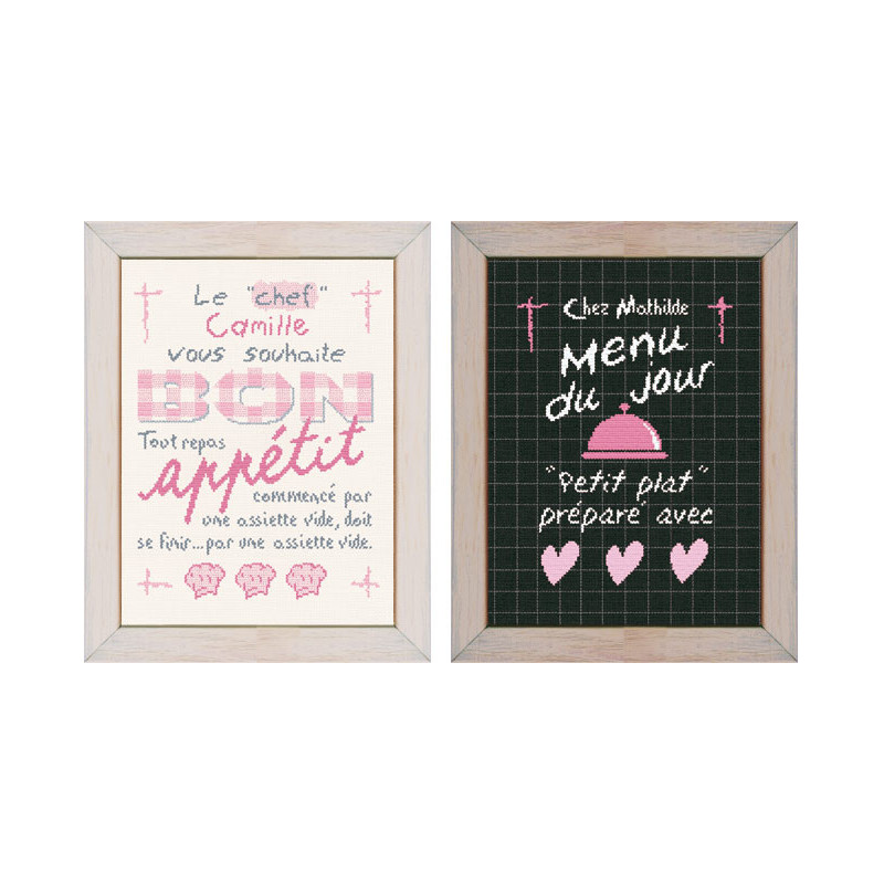 L'article 'LiliPoints, Grille Menu du jour (S008)' fait partie de notre assortiment depuis le 28 mai 2015. LiliPoints nous propose une très jolie gamme moderne de points de croix comptés, faciles à réaliser sur des thèmes toujours actuels - mariages- naissance - fêtes - Noël. Détail important: la créatrice nous conseille souvent dans ces fiches de réaliser la broderie 1 fil sur 1 fil lorsque les modèles ont plus de 150 points de large ou de haut. A vous de choisir ainsi la taille du résultat car en utilisant la trame standard 5.5 points/cm, les broderies sont parfois un peu grandes pour les monter en cadre, et alors nous conseillons de les monter sur un coussin (lorsqu'ils s'agit notamment de broderie à thème - amitié - mariage). Fiche technique : points de croix - peu de teintes utilisées dans les cotons - peu de points arrières. Les accessoires proposés sont souvent compris avec la fiche (coeurs en nacre - boutons).
