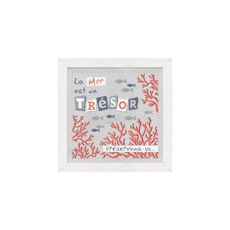 L'article 'LiliPoints, Grille la mer est un trésor (A015)' fait partie de notre assortiment depuis le 28 mai 2015. LiliPoints nous propose une très jolie gamme moderne de points de croix comptés, faciles à réaliser sur des thèmes toujours actuels - mariages- naissance - fêtes - Noël. Détail important: la créatrice nous conseille souvent dans ces fiches de réaliser la broderie 1 fil sur 1 fil lorsque les modèles ont plus de 150 points de large ou de haut. A vous de choisir ainsi la taille du résultat car en utilisant la trame standard 5.5 points/cm, les broderies sont parfois un peu grandes pour les monter en cadre, et alors nous conseillons de les monter sur un coussin (lorsqu'ils s'agit notamment de broderie à thème - amitié - mariage). Fiche technique : points de croix - peu de teintes utilisées dans les cotons - peu de points arrières. Les accessoires proposés sont souvent compris avec la fiche (coeurs en nacre - boutons).
