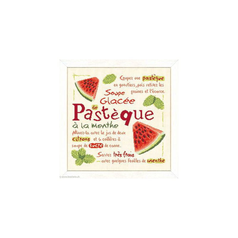 L'article 'LiliPoints, Grille Gourmandise - Soupe à la pastèque (G027)' fait partie de notre assortiment depuis le 1 juin 2016. LiliPoints nous propose une très jolie gamme moderne de points de croix comptés, faciles à réaliser sur des thèmes toujours actuels - mariages- naissance - fêtes - Noël. Détail important: la créatrice nous conseille souvent dans ces fiches de réaliser la broderie 1 fil sur 1 fil lorsque les modèles ont plus de 150 points de large ou de haut. A vous de choisir ainsi la taille du résultat car en utilisant la trame standard 5.5 points/cm, les broderies sont parfois un peu grandes pour les monter en cadre, et alors nous conseillons de les monter sur un coussin (lorsqu'ils s'agit notamment de broderie à thème - amitié - mariage). Fiche technique : points de croix - peu de teintes utilisées dans les cotons - peu de points arrières. Les accessoires proposés sont souvent compris avec la fiche (coeurs en nacre - boutons).