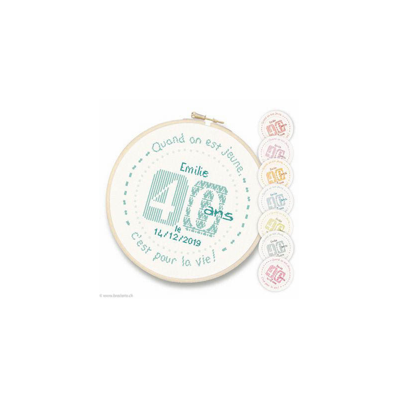 L'article 'LiliPoints, Grille Fête - 40 ans (F013)' fait partie de notre assortiment depuis le 25 avril 2019. LiliPoints nous propose une très jolie gamme moderne de points de croix comptés, faciles à réaliser sur des thèmes toujours actuels - mariages- naissance - fêtes - Noël. Détail important: la créatrice nous conseille souvent dans ces fiches de réaliser la broderie 1 fil sur 1 fil lorsque les modèles ont plus de 150 points de large ou de haut. A vous de choisir ainsi la taille du résultat car en utilisant la trame standard 5.5 points/cm, les broderies sont parfois un peu grandes pour les monter en cadre, et alors nous conseillons de les monter sur un coussin (lorsqu'ils s'agit notamment de broderie à thème - amitié - mariage). Fiche technique : points de croix - peu de teintes utilisées dans les cotons - peu de points arrières. Les accessoires proposés sont souvent compris avec la fiche (coeurs en nacre - boutons).