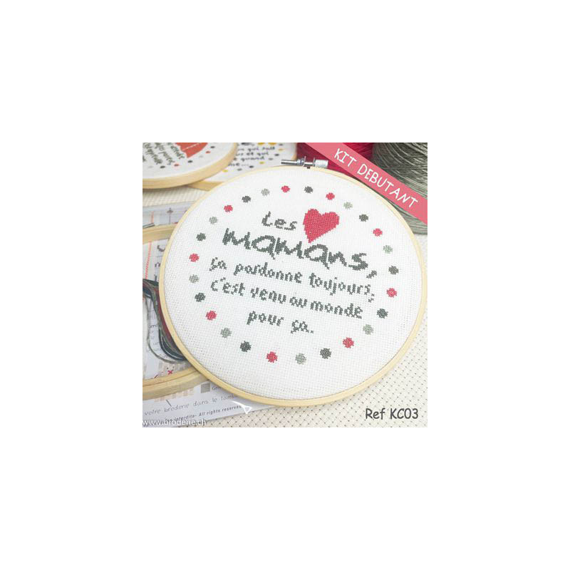L'article 'LiliPoints, Kit Citation "Maman" (KC03)' fait partie de notre assortiment depuis le 28 avril 2023. LiliPoints nous propose une très jolie gamme moderne de points de croix comptés, faciles à réaliser sur des thèmes toujours actuels - mariages- naissance - fêtes - Noël. Détail important: la créatrice nous conseille souvent dans ces fiches de réaliser la broderie 1 fil sur 1 fil lorsque les modèles ont plus de 150 points de large ou de haut. A vous de choisir ainsi la taille du résultat car en utilisant la trame standard 5.5 points/cm, les broderies sont parfois un peu grandes pour les monter en cadre, et alors nous conseillons de les monter sur un coussin (lorsqu'ils s'agit notamment de broderie à thème - amitié - mariage). Fiche technique : points de croix - peu de teintes utilisées dans les cotons - peu de points arrières. Les accessoires proposés sont souvent compris avec la fiche (coeurs en nacre - boutons).
