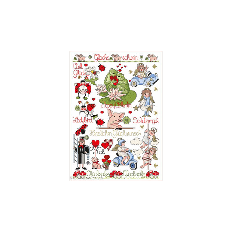 L'article 'Lindner, grille Glücksbringer (LIN0513-037)' fait partie de notre assortiment depuis le 25 août 2014. Michael et Gudrun Lindner, déjà actifs dans la création du points de croix comptés auparavant, ont créé leur propre gamme en 2011. Chaque dépliant est constitué de quatre feuilles de diagrammes en couleurs, facilement réalisables.