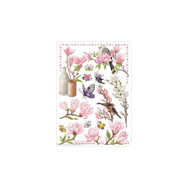 L'article 'Lindner, grille Magnolien (LIN0514-055)' fait partie de notre assortiment depuis le 25 août 2014. Michael et Gudrun Lindner, déjà actifs dans la création du points de croix comptés auparavant, ont créé leur propre gamme en 2011. Chaque dépliant est constitué de quatre feuilles de diagrammes en couleurs, facilement réalisables.
