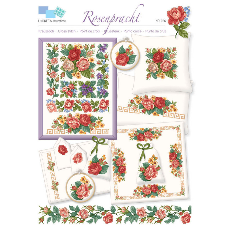 L'article 'Lindner, grille Rosenpracht (LIN0415-066)' fait partie de notre assortiment depuis le 22 août 2015. Michael et Gudrun Lindner, déjà actifs dans la création du points de croix comptés auparavant, ont créé leur propre gamme en 2011. Chaque dépliant est constitué de quatre feuilles de diagrammes en couleurs, facilement réalisables.