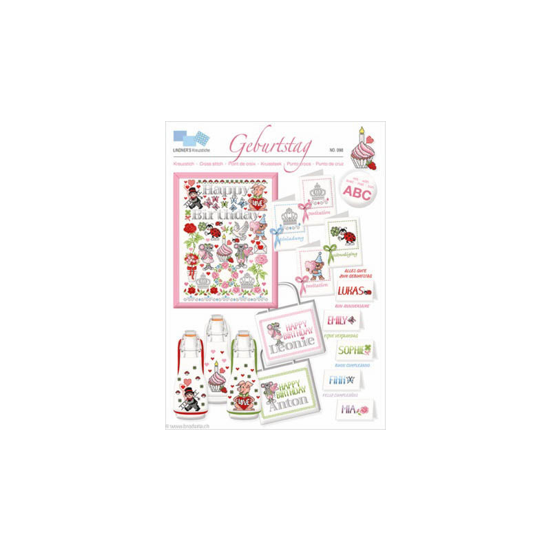 L'article 'Lindner, grille Geburstag (LIN0518-098)' fait partie de notre assortiment depuis le 5 juin 2018. Michael et Gudrun Lindner, déjà actifs dans la création du points de croix comptés auparavant, ont créé leur propre gamme en 2011. Chaque dépliant est constitué de quatre feuilles de diagrammes en couleurs, facilement réalisables.
