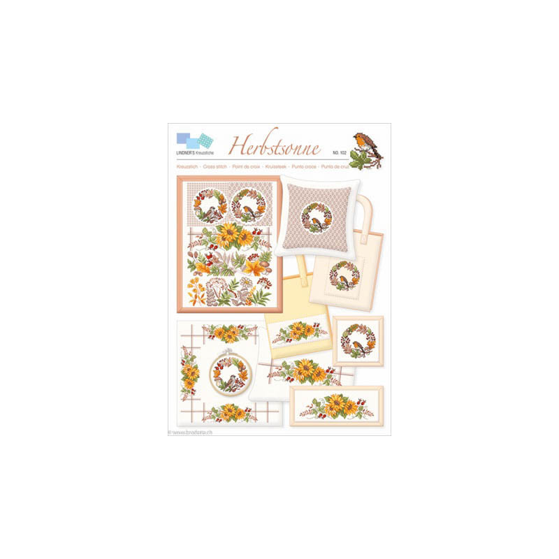 L'article 'Lindner, grille Herbstsonne (LIN0818-102)' fait partie de notre assortiment depuis le 23 août 2018. Michael et Gudrun Lindner, déjà actifs dans la création du points de croix comptés auparavant, ont créé leur propre gamme en 2011. Chaque dépliant est constitué de quatre feuilles de diagrammes en couleurs, facilement réalisables.