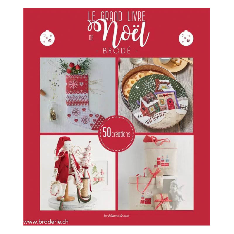 Editions de Saxe, Livre Le grand livre de Noël (art. GUID015). Livre de 160 pages, avec 60 modèles de Isabelle Haccourt-Vautier (point de croix), Jennifer Lentini (broderie traditionnelle), Cécile Pozzo di Borgo (carton perforé à broder)..