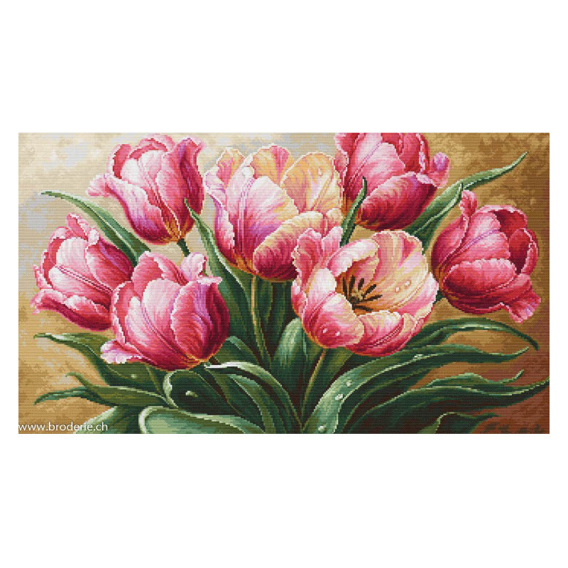 L'article 'Luca-S, kit canevas petits points Graceful Tulips (LUCASG718)' fait partie de notre assortiment depuis le 20 mai 2025. Dans cette rubrique vous trouvez les canevas 25 ct à compter de la maison moldave Luca-S (la trame correspond à 10 points/cm). Le point de broderie est le demi point comme le Gobelin, mais à compter sur un canevas vierge. Presque tous ces motifs se trouvent aussi en point de croix comptés, avec une trame de 6.4 ou 7 points/cm avec la référence B devant le chiffre, ce qui donne un résultat plus grand. Les fils ou laines sont de la maison Anchor.