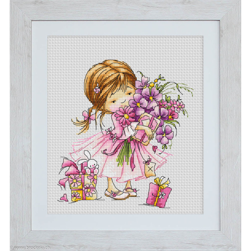 L'article 'Luca-S, kit Girl with a Bouquet (LUCAB1055)' fait partie de notre assortiment depuis le 29 septembre 2018. Luca-S est une gamme de points de croix comptés qui nous vient de Moldavie. Il y a beaucoup de modèles de personnages, paysages, nature morte, ainsi que de sympathiques kits pour Noël, des sacs à confectionner, des carttes postales à broder. Pour beaucoup de modèle vous pouvez aussi avoir le kit en canevas 25ct, pour des demi-points à compter (10/cm), ce qui fait la broderie bien plus petite et fine dans la rubrique Kits - Luca-S (P). Les kits sont fournis principalement sur de la trame aïda 6.4 points/cm ou 7 points/cm, ou de l'étamine de Zweigart, les coussins avec de l'étamine 8 fils ou 10 fils/cm. Les fils sont de la maison Anchor.