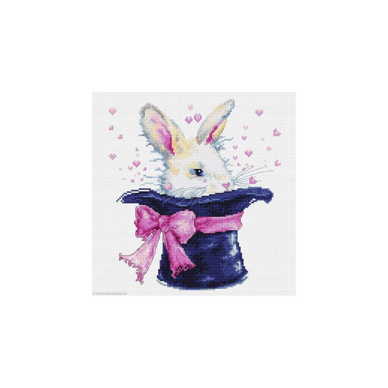 L'article 'Luca-S, kit Rabbit (LUCAB2302)' fait partie de notre assortiment depuis le 5 octobre 2018. Luca-S est une gamme de points de croix comptés qui nous vient de Moldavie. Il y a beaucoup de modèles de personnages, paysages, nature morte, ainsi que de sympathiques kits pour Noël, des sacs à confectionner, des carttes postales à broder. Pour beaucoup de modèle vous pouvez aussi avoir le kit en canevas 25ct, pour des demi-points à compter (10/cm), ce qui fait la broderie bien plus petite et fine dans la rubrique Kits - Luca-S (P). Les kits sont fournis principalement sur de la trame aïda 6.4 points/cm ou 7 points/cm, ou de l'étamine de Zweigart, les coussins avec de l'étamine 8 fils ou 10 fils/cm. Les fils sont de la maison Anchor.