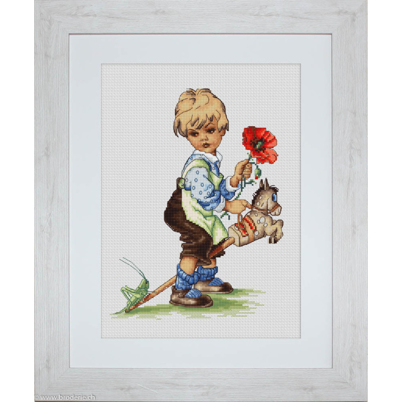 L'article 'Luca-S, kit Boy (LUCAB1102)' fait partie de notre assortiment depuis le 29 septembre 2018. Luca-S est une gamme de points de croix comptés qui nous vient de Moldavie. Il y a beaucoup de modèles de personnages, paysages, nature morte, ainsi que de sympathiques kits pour Noël, des sacs à confectionner, des carttes postales à broder. Pour beaucoup de modèle vous pouvez aussi avoir le kit en canevas 25ct, pour des demi-points à compter (10/cm), ce qui fait la broderie bien plus petite et fine dans la rubrique Kits - Luca-S (P). Les kits sont fournis principalement sur de la trame aïda 6.4 points/cm ou 7 points/cm, ou de l'étamine de Zweigart, les coussins avec de l'étamine 8 fils ou 10 fils/cm. Les fils sont de la maison Anchor.