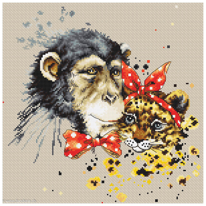 L'article 'Luca-S, kit The Monkey (LUCAB2308)' fait partie de notre assortiment depuis le 29 septembre 2018. Luca-S est une gamme de points de croix comptés qui nous vient de Moldavie. Il y a beaucoup de modèles de personnages, paysages, nature morte, ainsi que de sympathiques kits pour Noël, des sacs à confectionner, des carttes postales à broder. Pour beaucoup de modèle vous pouvez aussi avoir le kit en canevas 25ct, pour des demi-points à compter (10/cm), ce qui fait la broderie bien plus petite et fine dans la rubrique Kits - Luca-S (P). Les kits sont fournis principalement sur de la trame aïda 6.4 points/cm ou 7 points/cm, ou de l'étamine de Zweigart, les coussins avec de l'étamine 8 fils ou 10 fils/cm. Les fils sont de la maison Anchor.