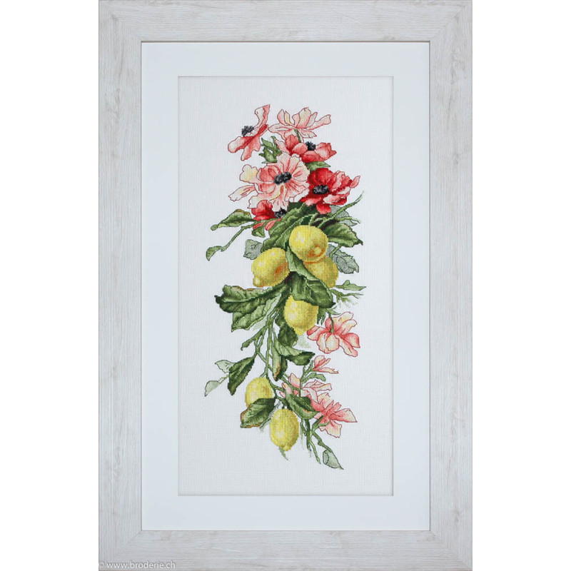 L'article 'Luca-S, kit Flowers and lemon (LUCAB210)' fait partie de notre assortiment depuis le 4 octobre 2018. Luca-S est une gamme de points de croix comptés qui nous vient de Moldavie. Il y a beaucoup de modèles de personnages, paysages, nature morte, ainsi que de sympathiques kits pour Noël, des sacs à confectionner, des carttes postales à broder. Pour beaucoup de modèle vous pouvez aussi avoir le kit en canevas 25ct, pour des demi-points à compter (10/cm), ce qui fait la broderie bien plus petite et fine dans la rubrique Kits - Luca-S (P). Les kits sont fournis principalement sur de la trame aïda 6.4 points/cm ou 7 points/cm, ou de l'étamine de Zweigart, les coussins avec de l'étamine 8 fils ou 10 fils/cm. Les fils sont de la maison Anchor.
