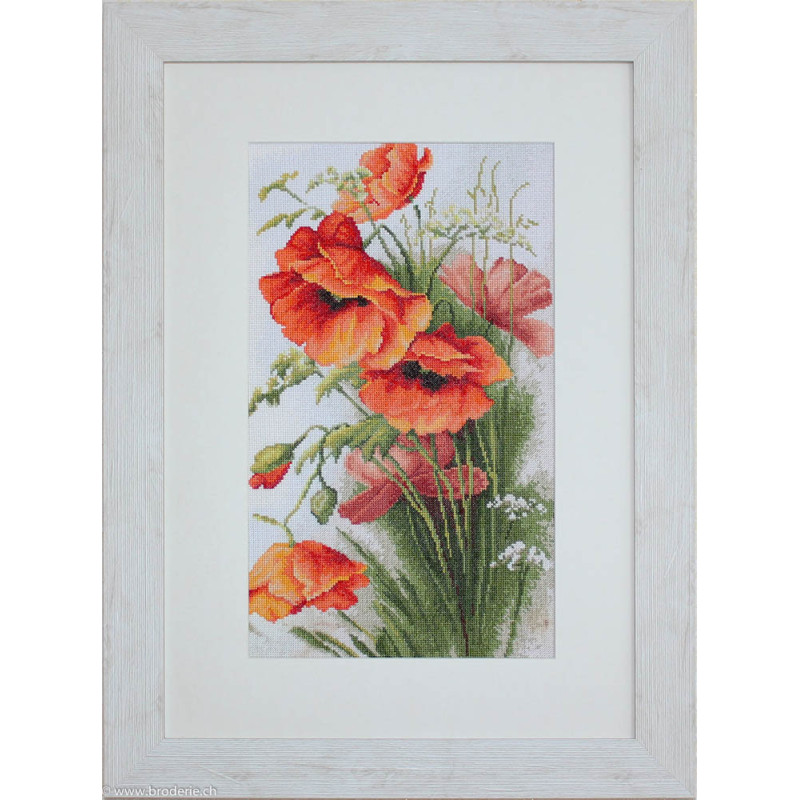 L'article 'Luca-S, kit Poppies (LUCAB213)' fait partie de notre assortiment depuis le 4 octobre 2018. Luca-S est une gamme de points de croix comptés qui nous vient de Moldavie. Il y a beaucoup de modèles de personnages, paysages, nature morte, ainsi que de sympathiques kits pour Noël, des sacs à confectionner, des carttes postales à broder. Pour beaucoup de modèle vous pouvez aussi avoir le kit en canevas 25ct, pour des demi-points à compter (10/cm), ce qui fait la broderie bien plus petite et fine dans la rubrique Kits - Luca-S (P). Les kits sont fournis principalement sur de la trame aïda 6.4 points/cm ou 7 points/cm, ou de l'étamine de Zweigart, les coussins avec de l'étamine 8 fils ou 10 fils/cm. Les fils sont de la maison Anchor.