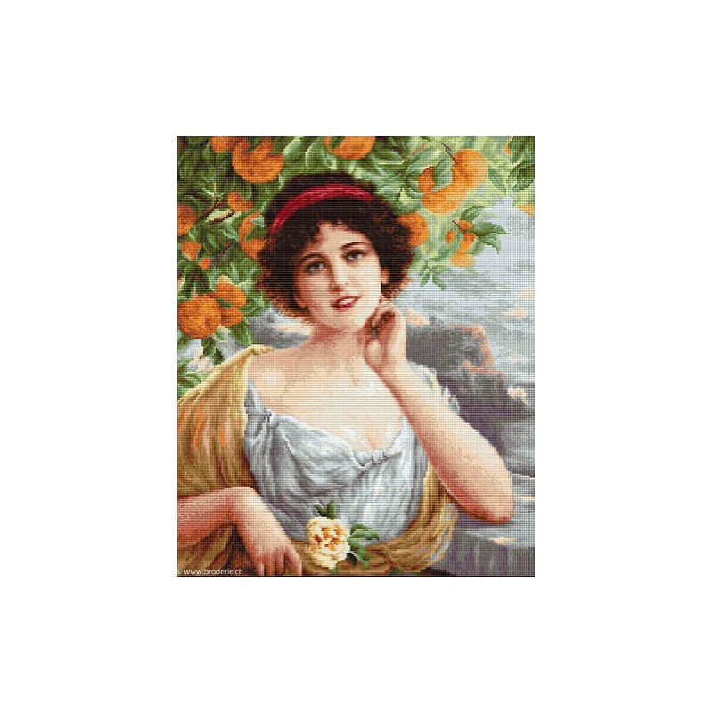 L'article 'Luca-S, kit Beauty under the orange tree (LUCAB546)' fait partie de notre assortiment depuis le 29 septembre 2018. Luca-S est une gamme de points de croix comptés qui nous vient de Moldavie. Il y a beaucoup de modèles de personnages, paysages, nature morte, ainsi que de sympathiques kits pour Noël, des sacs à confectionner, des carttes postales à broder. Pour beaucoup de modèle vous pouvez aussi avoir le kit en canevas 25ct, pour des demi-points à compter (10/cm), ce qui fait la broderie bien plus petite et fine dans la rubrique Kits - Luca-S (P). Les kits sont fournis principalement sur de la trame aïda 6.4 points/cm ou 7 points/cm, ou de l'étamine de Zweigart, les coussins avec de l'étamine 8 fils ou 10 fils/cm. Les fils sont de la maison Anchor.