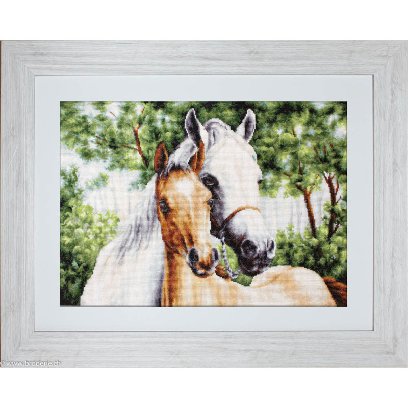 L'article 'Luca-S, kit Mother and Child (LUCAB521)' fait partie de notre assortiment depuis le 3 octobre 2018. Luca-S est une gamme de points de croix comptés qui nous vient de Moldavie. Il y a beaucoup de modèles de personnages, paysages, nature morte, ainsi que de sympathiques kits pour Noël, des sacs à confectionner, des carttes postales à broder. Pour beaucoup de modèle vous pouvez aussi avoir le kit en canevas 25ct, pour des demi-points à compter (10/cm), ce qui fait la broderie bien plus petite et fine dans la rubrique Kits - Luca-S (P). Les kits sont fournis principalement sur de la trame aïda 6.4 points/cm ou 7 points/cm, ou de l'étamine de Zweigart, les coussins avec de l'étamine 8 fils ou 10 fils/cm. Les fils sont de la maison Anchor.