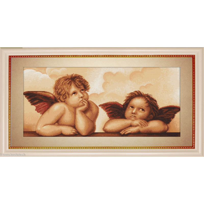 L'article 'Luca-S, kit Angels (LUCAB319)' fait partie de notre assortiment depuis le 29 septembre 2018. Luca-S est une gamme de points de croix comptés qui nous vient de Moldavie. Il y a beaucoup de modèles de personnages, paysages, nature morte, ainsi que de sympathiques kits pour Noël, des sacs à confectionner, des carttes postales à broder. Pour beaucoup de modèle vous pouvez aussi avoir le kit en canevas 25ct, pour des demi-points à compter (10/cm), ce qui fait la broderie bien plus petite et fine dans la rubrique Kits - Luca-S (P). Les kits sont fournis principalement sur de la trame aïda 6.4 points/cm ou 7 points/cm, ou de l'étamine de Zweigart, les coussins avec de l'étamine 8 fils ou 10 fils/cm. Les fils sont de la maison Anchor.