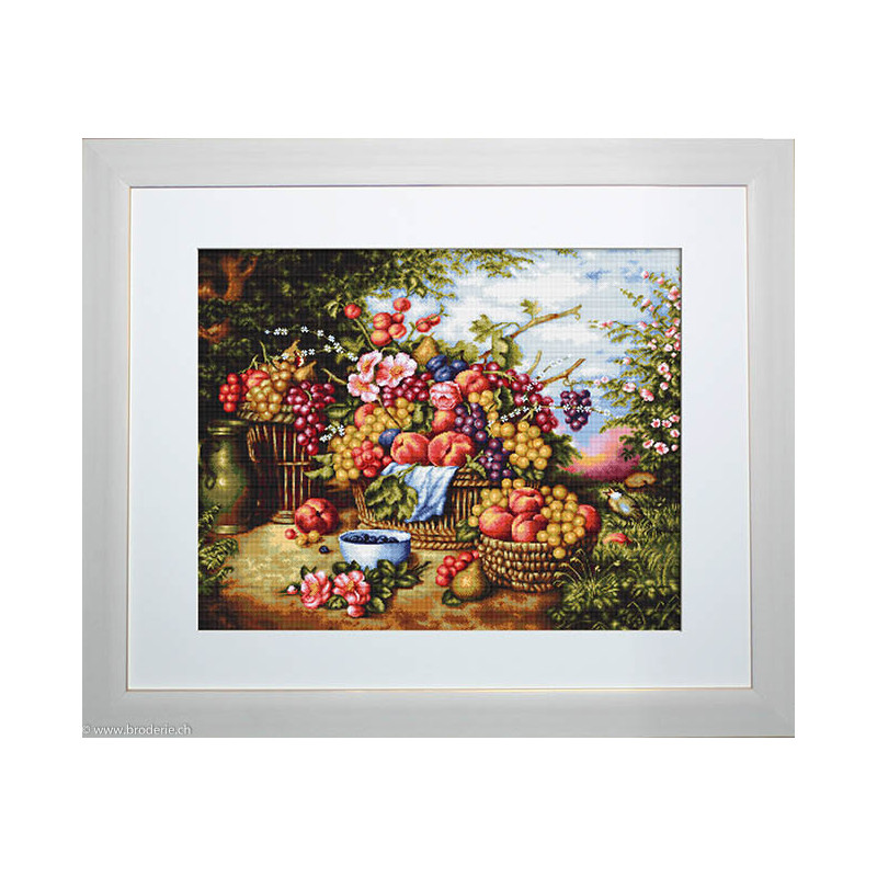 L'article 'Luca-S, kit Still Life on Background of Nature (LUCAB475)' fait partie de notre assortiment depuis le 4 octobre 2018. Luca-S est une gamme de points de croix comptés qui nous vient de Moldavie. Il y a beaucoup de modèles de personnages, paysages, nature morte, ainsi que de sympathiques kits pour Noël, des sacs à confectionner, des carttes postales à broder. Pour beaucoup de modèle vous pouvez aussi avoir le kit en canevas 25ct, pour des demi-points à compter (10/cm), ce qui fait la broderie bien plus petite et fine dans la rubrique Kits - Luca-S (P). Les kits sont fournis principalement sur de la trame aïda 6.4 points/cm ou 7 points/cm, ou de l'étamine de Zweigart, les coussins avec de l'étamine 8 fils ou 10 fils/cm. Les fils sont de la maison Anchor.