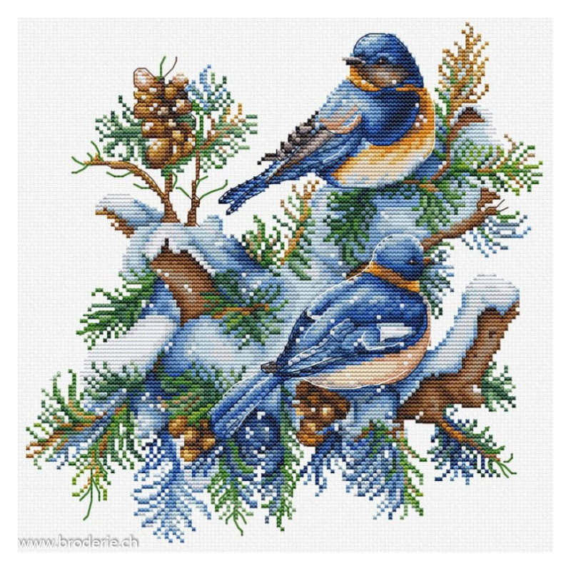 L'article 'Luca-S, kit the Birds Winter (LUCASB2418)' fait partie de notre assortiment depuis le 16 mai 2023. Luca-S est une gamme de points de croix comptés qui nous vient de Moldavie. Il y a beaucoup de modèles de personnages, paysages, nature morte, ainsi que de sympathiques kits pour Noël, des sacs à confectionner, des carttes postales à broder. Pour beaucoup de modèle vous pouvez aussi avoir le kit en canevas 25ct, pour des demi-points à compter (10/cm), ce qui fait la broderie bien plus petite et fine dans la rubrique Kits - Luca-S (P). Les kits sont fournis principalement sur de la trame aïda 6.4 points/cm ou 7 points/cm, ou de l'étamine de Zweigart, les coussins avec de l'étamine 8 fils ou 10 fils/cm. Les fils sont de la maison Anchor.