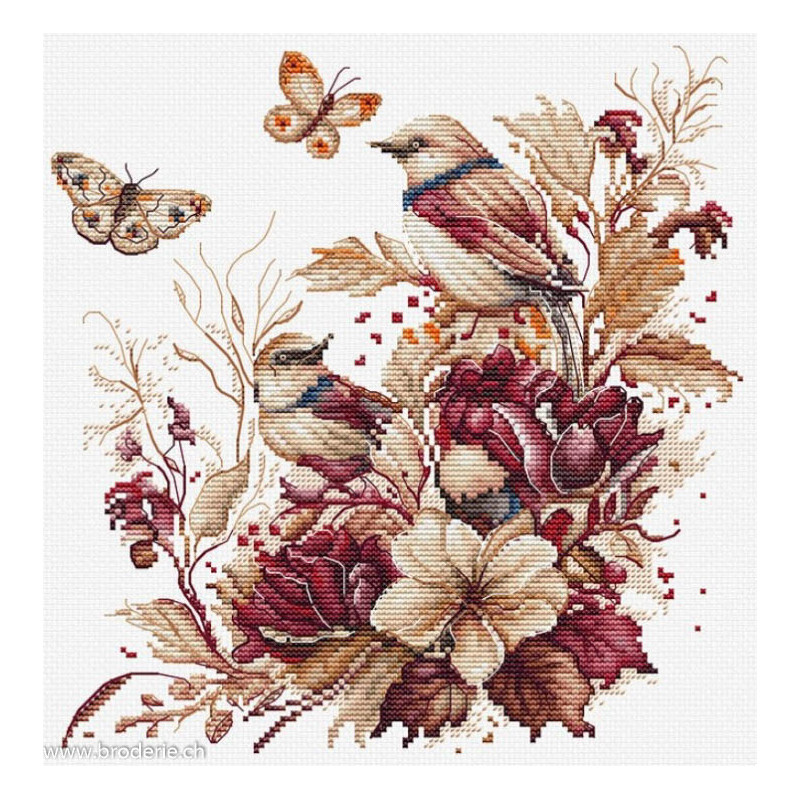 L'article 'Luca-S, kit the Birds autumn (LUCASB2419)' fait partie de notre assortiment depuis le 16 mai 2023. Luca-S est une gamme de points de croix comptés qui nous vient de Moldavie. Il y a beaucoup de modèles de personnages, paysages, nature morte, ainsi que de sympathiques kits pour Noël, des sacs à confectionner, des carttes postales à broder. Pour beaucoup de modèle vous pouvez aussi avoir le kit en canevas 25ct, pour des demi-points à compter (10/cm), ce qui fait la broderie bien plus petite et fine dans la rubrique Kits - Luca-S (P). Les kits sont fournis principalement sur de la trame aïda 6.4 points/cm ou 7 points/cm, ou de l'étamine de Zweigart, les coussins avec de l'étamine 8 fils ou 10 fils/cm. Les fils sont de la maison Anchor.