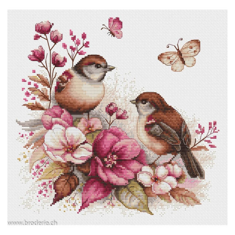 L'article 'Luca-S, kit the Birds spring (LUCASB2420)' fait partie de notre assortiment depuis le 6 novembre 2023. Luca-S est une gamme de points de croix comptés qui nous vient de Moldavie. Il y a beaucoup de modèles de personnages, paysages, nature morte, ainsi que de sympathiques kits pour Noël, des sacs à confectionner, des carttes postales à broder. Pour beaucoup de modèle vous pouvez aussi avoir le kit en canevas 25ct, pour des demi-points à compter (10/cm), ce qui fait la broderie bien plus petite et fine dans la rubrique Kits - Luca-S (P). Les kits sont fournis principalement sur de la trame aïda 6.4 points/cm ou 7 points/cm, ou de l'étamine de Zweigart, les coussins avec de l'étamine 8 fils ou 10 fils/cm. Les fils sont de la maison Anchor.