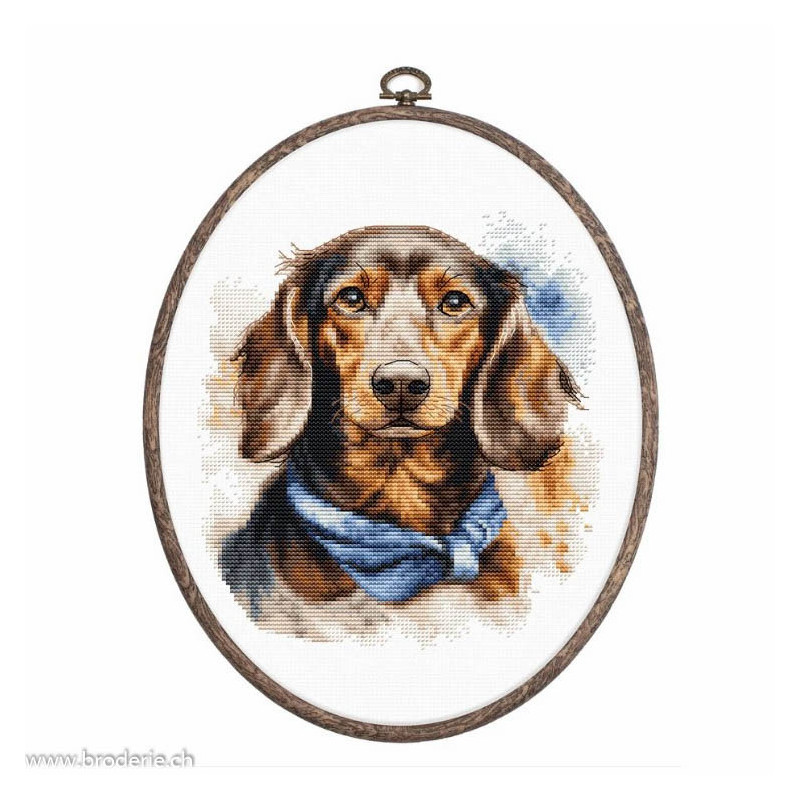 L'article 'Luca-S, kit The Dachshund (LUCASBC222)' fait partie de notre assortiment depuis le 6 novembre 2023. Luca-S est une gamme de points de croix comptés qui nous vient de Moldavie. Il y a beaucoup de modèles de personnages, paysages, nature morte, ainsi que de sympathiques kits pour Noël, des sacs à confectionner, des carttes postales à broder. Pour beaucoup de modèle vous pouvez aussi avoir le kit en canevas 25ct, pour des demi-points à compter (10/cm), ce qui fait la broderie bien plus petite et fine dans la rubrique Kits - Luca-S (P). Les kits sont fournis principalement sur de la trame aïda 6.4 points/cm ou 7 points/cm, ou de l'étamine de Zweigart, les coussins avec de l'étamine 8 fils ou 10 fils/cm. Les fils sont de la maison Anchor.