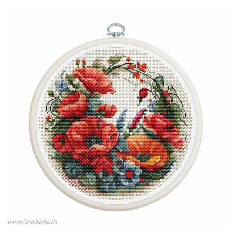 L'article 'Luca-S, kit Composition With Poppies (LUCASBC209)' fait partie de notre assortiment depuis le 6 novembre 2023. Luca-S est une gamme de points de croix comptés qui nous vient de Moldavie. Il y a beaucoup de modèles de personnages, paysages, nature morte, ainsi que de sympathiques kits pour Noël, des sacs à confectionner, des carttes postales à broder. Pour beaucoup de modèle vous pouvez aussi avoir le kit en canevas 25ct, pour des demi-points à compter (10/cm), ce qui fait la broderie bien plus petite et fine dans la rubrique Kits - Luca-S (P). Les kits sont fournis principalement sur de la trame aïda 6.4 points/cm ou 7 points/cm, ou de l'étamine de Zweigart, les coussins avec de l'étamine 8 fils ou 10 fils/cm. Les fils sont de la maison Anchor.