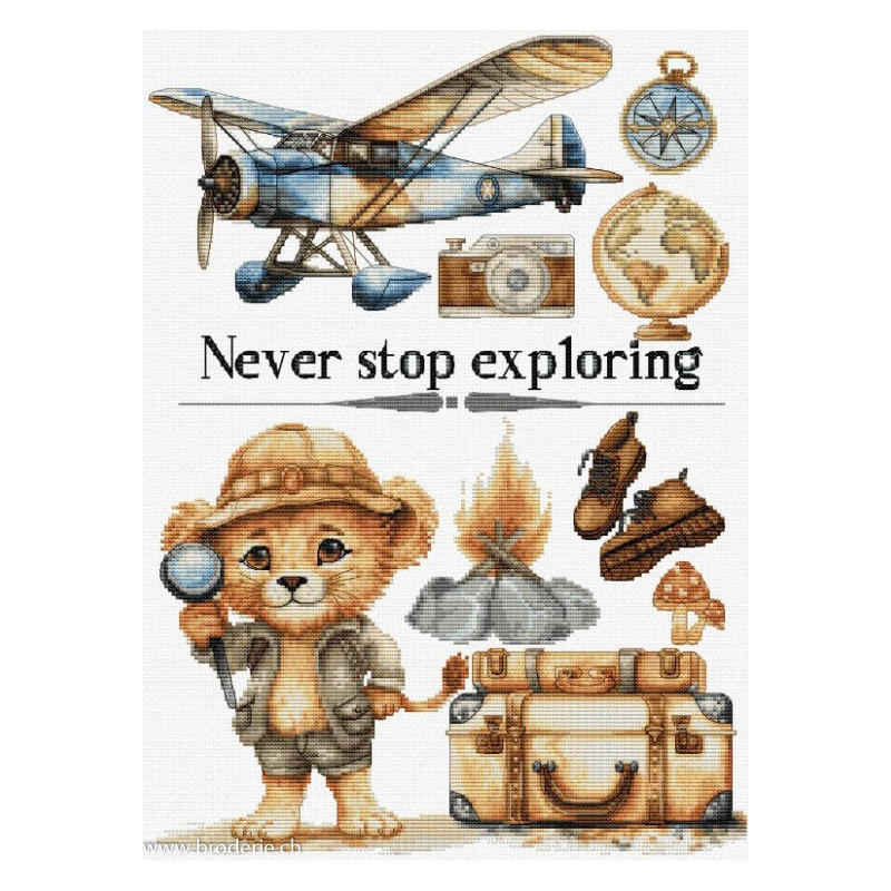 L'article 'Luca-S, kit Never Stop Exploring (LUCASB1408)' fait partie de notre assortiment depuis le 21 février 2024. Luca-S est une gamme de points de croix comptés qui nous vient de Moldavie. Il y a beaucoup de modèles de personnages, paysages, nature morte, ainsi que de sympathiques kits pour Noël, des sacs à confectionner, des carttes postales à broder. Pour beaucoup de modèle vous pouvez aussi avoir le kit en canevas 25ct, pour des demi-points à compter (10/cm), ce qui fait la broderie bien plus petite et fine dans la rubrique Kits - Luca-S (P). Les kits sont fournis principalement sur de la trame aïda 6.4 points/cm ou 7 points/cm, ou de l'étamine de Zweigart, les coussins avec de l'étamine 8 fils ou 10 fils/cm. Les fils sont de la maison Anchor.