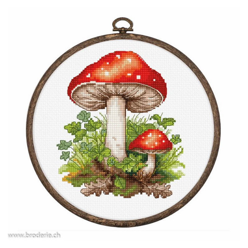 L'article 'Luca-S, kit Amanites (LUCASBC232)' fait partie de notre assortiment depuis le 17 février 2024. Luca-S est une gamme de points de croix comptés qui nous vient de Moldavie. Il y a beaucoup de modèles de personnages, paysages, nature morte, ainsi que de sympathiques kits pour Noël, des sacs à confectionner, des carttes postales à broder. Pour beaucoup de modèle vous pouvez aussi avoir le kit en canevas 25ct, pour des demi-points à compter (10/cm), ce qui fait la broderie bien plus petite et fine dans la rubrique Kits - Luca-S (P). Les kits sont fournis principalement sur de la trame aïda 6.4 points/cm ou 7 points/cm, ou de l'étamine de Zweigart, les coussins avec de l'étamine 8 fils ou 10 fils/cm. Les fils sont de la maison Anchor.