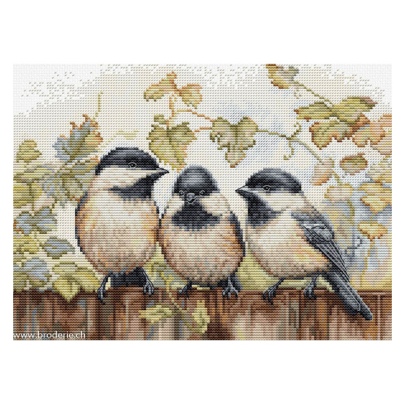 L'article 'Luca-S, kit Chickadees On The Fence (LUCASBU5066)' fait partie de notre assortiment depuis le 6 décembre 2024. Luca-S est une gamme de points de croix comptés qui nous vient de Moldavie. Il y a beaucoup de modèles de personnages, paysages, nature morte, ainsi que de sympathiques kits pour Noël, des sacs à confectionner, des carttes postales à broder. Pour beaucoup de modèle vous pouvez aussi avoir le kit en canevas 25ct, pour des demi-points à compter (10/cm), ce qui fait la broderie bien plus petite et fine dans la rubrique Kits - Luca-S (P). Les kits sont fournis principalement sur de la trame aïda 6.4 points/cm ou 7 points/cm, ou de l'étamine de Zweigart, les coussins avec de l'étamine 8 fils ou 10 fils/cm. Les fils sont de la maison Anchor.