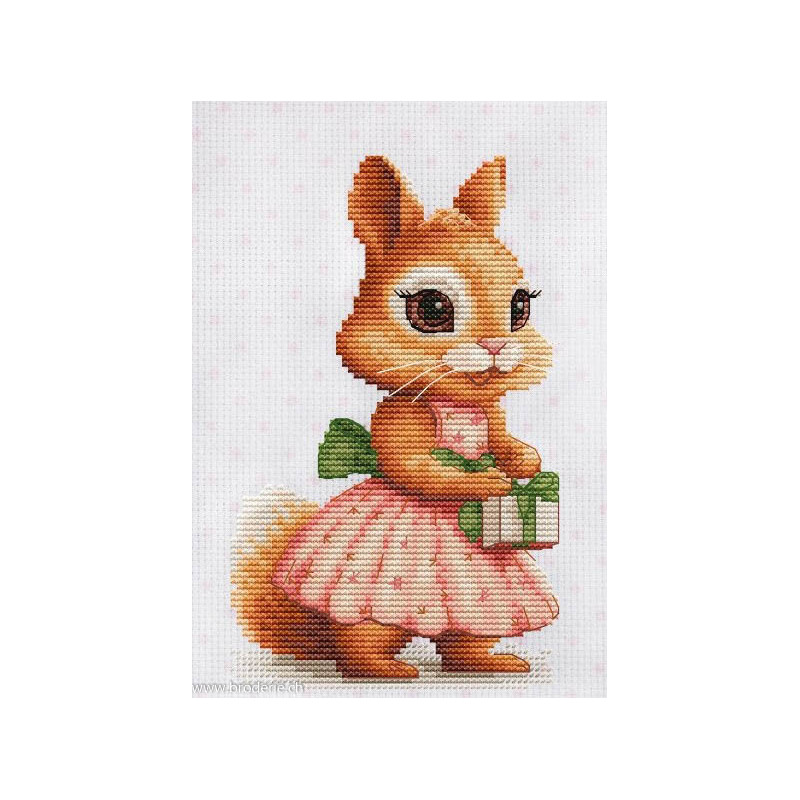 L'article 'Luca-S, kit The Squirrel's Gift (LUCASB1414)' fait partie de notre assortiment depuis le 6 décembre 2024. Luca-S est une gamme de points de croix comptés qui nous vient de Moldavie. Il y a beaucoup de modèles de personnages, paysages, nature morte, ainsi que de sympathiques kits pour Noël, des sacs à confectionner, des carttes postales à broder. Pour beaucoup de modèle vous pouvez aussi avoir le kit en canevas 25ct, pour des demi-points à compter (10/cm), ce qui fait la broderie bien plus petite et fine dans la rubrique Kits - Luca-S (P). Les kits sont fournis principalement sur de la trame aïda 6.4 points/cm ou 7 points/cm, ou de l'étamine de Zweigart, les coussins avec de l'étamine 8 fils ou 10 fils/cm. Les fils sont de la maison Anchor.