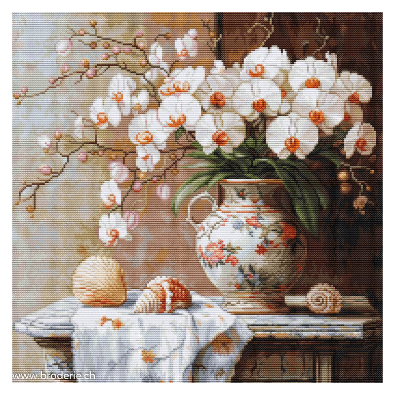 L'article 'Luca-S, kit The Elegance of the Orchid (LUCASB714)' fait partie de notre assortiment depuis le 20 mai 2025. Luca-S est une gamme de points de croix comptés qui nous vient de Moldavie. Il y a beaucoup de modèles de personnages, paysages, nature morte, ainsi que de sympathiques kits pour Noël, des sacs à confectionner, des carttes postales à broder. Pour beaucoup de modèle vous pouvez aussi avoir le kit en canevas 25ct, pour des demi-points à compter (10/cm), ce qui fait la broderie bien plus petite et fine dans la rubrique Kits - Luca-S (P). Les kits sont fournis principalement sur de la trame aïda 6.4 points/cm ou 7 points/cm, ou de l'étamine de Zweigart, les coussins avec de l'étamine 8 fils ou 10 fils/cm. Les fils sont de la maison Anchor.