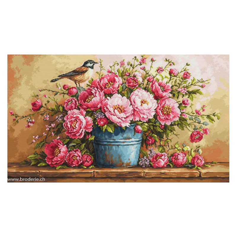 L'article 'Luca-S, kit Lush Bouquet of Flowers (LUCASB7055)' fait partie de notre assortiment depuis le 3 novembre 2025. Luca-S est une gamme de points de croix comptés qui nous vient de Moldavie. Il y a beaucoup de modèles de personnages, paysages, nature morte, ainsi que de sympathiques kits pour Noël, des sacs à confectionner, des carttes postales à broder. Pour beaucoup de modèle vous pouvez aussi avoir le kit en canevas 25ct, pour des demi-points à compter (10/cm), ce qui fait la broderie bien plus petite et fine dans la rubrique Kits - Luca-S (P). Les kits sont fournis principalement sur de la trame aïda 6.4 points/cm ou 7 points/cm, ou de l'étamine de Zweigart, les coussins avec de l'étamine 8 fils ou 10 fils/cm. Les fils sont de la maison Anchor.