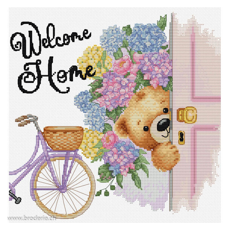Luca-S, kit Welcome Home! (art. LUCASB1433). Dimensions: 22 x 22 cm. Trame: Aïda 6.4 pts.