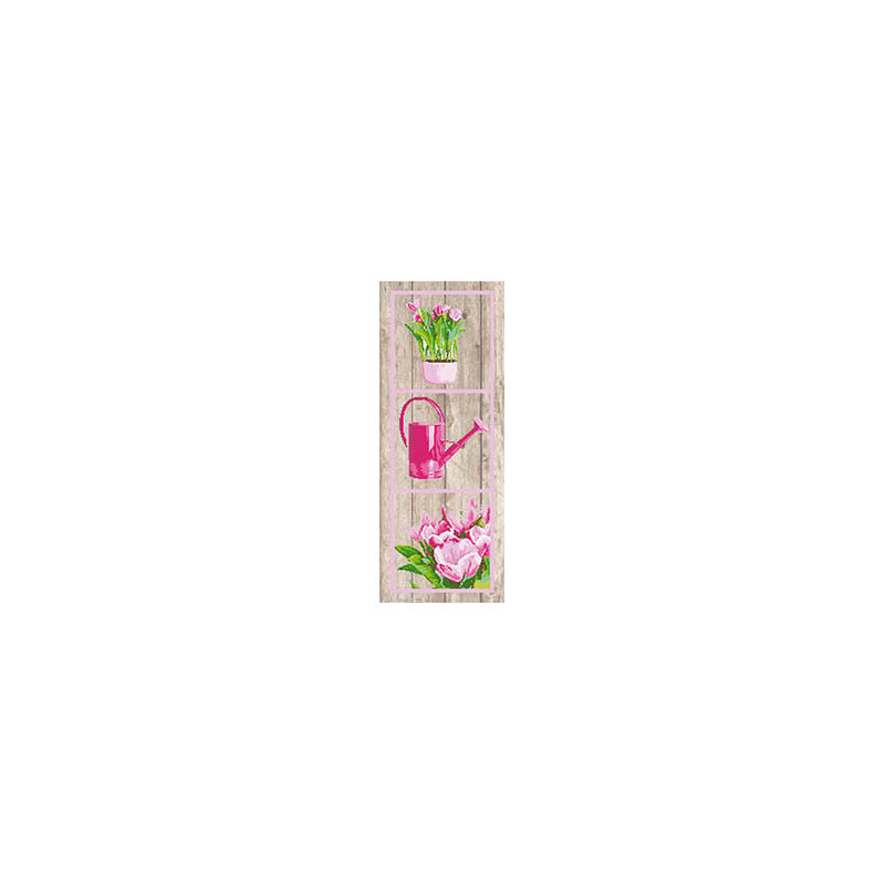 Marie Coeur, kit Tulipes (art. MC1706-4680B). Dimensions: 50 x 20 cm. Trame: Aïde 7 pts. Points utilisés: point de croix. Trame colorée, aussi disponible sur trame blanche sous référence 1966-4680A, autre motif sous référence 1706-4681B.