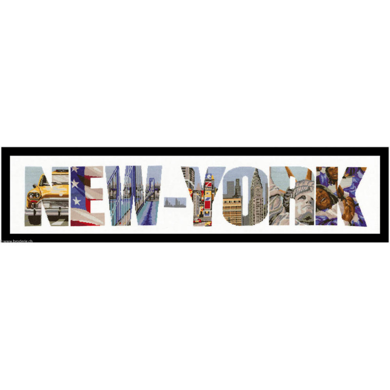 Marie Coeur, kit New York (art. MC1960-4850). Dimensions: 95 x 30 cm. Trame: Aïde 7 pts. Dans la même série d'autres villes et pays, Paris, Londres, Venise, Tokyo, Moscou, Québec, Madrid....