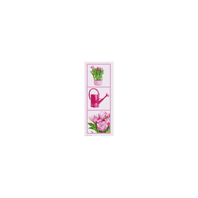 Marie Coeur, kit Tulipes (art. MC1966-4680A). Dimensions: 50 x 20 cm. Trame: Aïde 7 pts. Points utilisés: point de croix. Aussi disponible sur trame colorée sous référence 1706-4680B, autre modèle tournesol sous 1966-4681.