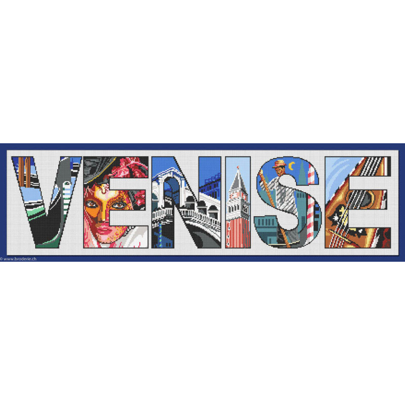 Marie Coeur, kit Venise (art. MC1987-4623). Dimensions: 75 x 30 cm. Trame: Aïde 7 pts. Dans la même série d'autres villes et pays, Paris, Londres, New York, Tokyo, Moscou, Québec, Madrid....