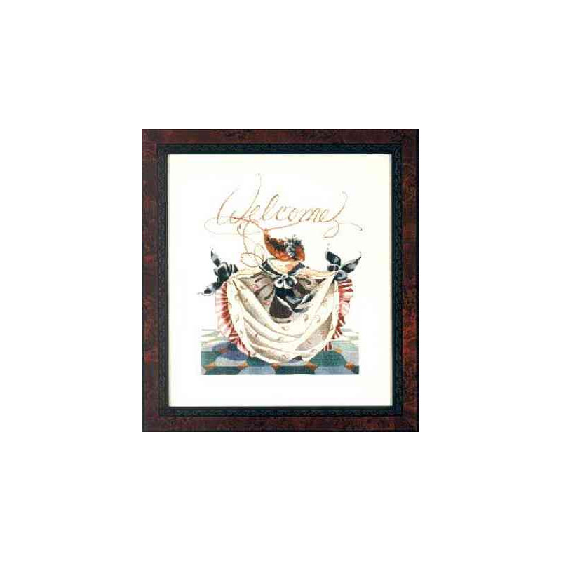 L'article 'Mirabilia, grille Savannah’s Curtsy (MD36)' fait partie de notre assortiment depuis le 3 septembre 2008. Mirabilia est un très belle gamme américaine de grands modèles de points de croix comptés, dessins créés par Nora Corbett. Ils représentent essentiellement des fées, elfes et élégantes dames. Presque chaque modèle nécessite des perles de la maison Mill Hill et parfois des fils Kreinik et/ou Caron. Nous vous obtenons rapidement aussi ces accessoires s'ils ne sont pas de stock. Pour l'instant, nous avons précisé sur le site les perles et fils nécessaires aux modèles de stock. Pour les autres, en attendant que nous le fassions, vous trouvez facilement ces indications sur www.mirabilia.com en recherchant le numéro du modèle. Nous vous communiquons volontiers une fourchette de prix pour les accessoires. Merci de faire attention à ce "détail" car il n'en est plus un lorsqu'il y a plusieurs paquets de perles, plusieurs fils différents ... et cela doit être pris en compte dans le prix de revient ... Fiche technique : points de croix - quelques demi-points, perles et fils métallisés. Pas de difficulté particulière ... mais quelques modèles sont complexes par la quantité de perles et les fils métallisés, et demandent un fin doigté. La trame utilisée le plus souvent est le lin 11 fils/cm, et sa teinte bien choisie rehaussera le modèle.