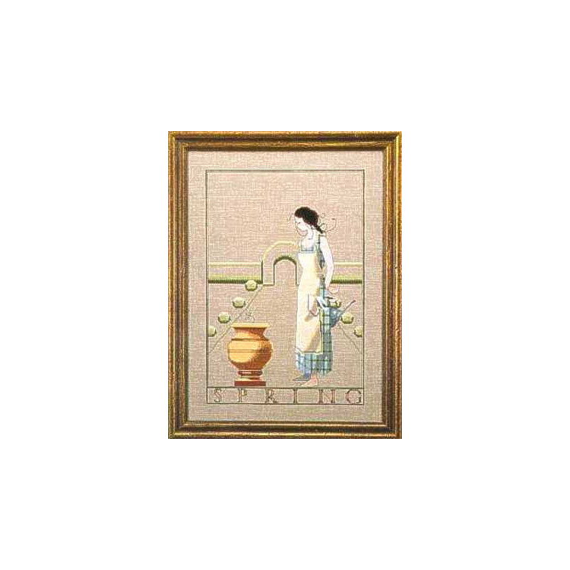 L'article 'Mirabilia, grille Spring In My Garden (MD53)' fait partie de notre assortiment depuis le 3 septembre 2008. Mirabilia est un très belle gamme américaine de grands modèles de points de croix comptés, dessins créés par Nora Corbett. Ils représentent essentiellement des fées, elfes et élégantes dames. Presque chaque modèle nécessite des perles de la maison Mill Hill et parfois des fils Kreinik et/ou Caron. Nous vous obtenons rapidement aussi ces accessoires s'ils ne sont pas de stock. Pour l'instant, nous avons précisé sur le site les perles et fils nécessaires aux modèles de stock. Pour les autres, en attendant que nous le fassions, vous trouvez facilement ces indications sur www.mirabilia.com en recherchant le numéro du modèle. Nous vous communiquons volontiers une fourchette de prix pour les accessoires. Merci de faire attention à ce "détail" car il n'en est plus un lorsqu'il y a plusieurs paquets de perles, plusieurs fils différents ... et cela doit être pris en compte dans le prix de revient ... Fiche technique : points de croix - quelques demi-points, perles et fils métallisés. Pas de difficulté particulière ... mais quelques modèles sont complexes par la quantité de perles et les fils métallisés, et demandent un fin doigté. La trame utilisée le plus souvent est le lin 11 fils/cm, et sa teinte bien choisie rehaussera le modèle.