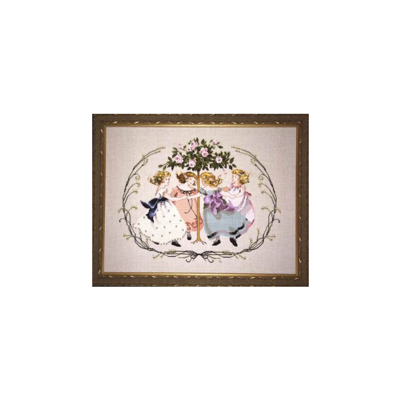 L'article 'Mirabilia, grille Ring Around The Rose Tree (MD76)' fait partie de notre assortiment depuis le 3 septembre 2008. Mirabilia est un très belle gamme américaine de grands modèles de points de croix comptés, dessins créés par Nora Corbett. Ils représentent essentiellement des fées, elfes et élégantes dames. Presque chaque modèle nécessite des perles de la maison Mill Hill et parfois des fils Kreinik et/ou Caron. Nous vous obtenons rapidement aussi ces accessoires s'ils ne sont pas de stock. Pour l'instant, nous avons précisé sur le site les perles et fils nécessaires aux modèles de stock. Pour les autres, en attendant que nous le fassions, vous trouvez facilement ces indications sur www.mirabilia.com en recherchant le numéro du modèle. Nous vous communiquons volontiers une fourchette de prix pour les accessoires. Merci de faire attention à ce "détail" car il n'en est plus un lorsqu'il y a plusieurs paquets de perles, plusieurs fils différents ... et cela doit être pris en compte dans le prix de revient ... Fiche technique : points de croix - quelques demi-points, perles et fils métallisés. Pas de difficulté particulière ... mais quelques modèles sont complexes par la quantité de perles et les fils métallisés, et demandent un fin doigté. La trame utilisée le plus souvent est le lin 11 fils/cm, et sa teinte bien choisie rehaussera le modèle.