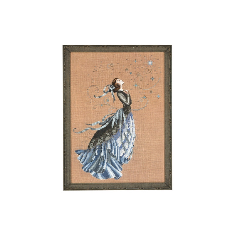 L'article 'Mirabilia, grille Stargazer (The) (MD88)' fait partie de notre assortiment depuis le 3 septembre 2008. Mirabilia est un très belle gamme américaine de grands modèles de points de croix comptés, dessins créés par Nora Corbett. Ils représentent essentiellement des fées, elfes et élégantes dames. Presque chaque modèle nécessite des perles de la maison Mill Hill et parfois des fils Kreinik et/ou Caron. Nous vous obtenons rapidement aussi ces accessoires s'ils ne sont pas de stock. Pour l'instant, nous avons précisé sur le site les perles et fils nécessaires aux modèles de stock. Pour les autres, en attendant que nous le fassions, vous trouvez facilement ces indications sur www.mirabilia.com en recherchant le numéro du modèle. Nous vous communiquons volontiers une fourchette de prix pour les accessoires. Merci de faire attention à ce "détail" car il n'en est plus un lorsqu'il y a plusieurs paquets de perles, plusieurs fils différents ... et cela doit être pris en compte dans le prix de revient ... Fiche technique : points de croix - quelques demi-points, perles et fils métallisés. Pas de difficulté particulière ... mais quelques modèles sont complexes par la quantité de perles et les fils métallisés, et demandent un fin doigté. La trame utilisée le plus souvent est le lin 11 fils/cm, et sa teinte bien choisie rehaussera le modèle.