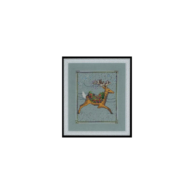 L'article 'Mirabilia Nora Corbett, grille Dasher Christmas Eve Courier (NC113)' fait partie de notre assortiment depuis le 3 septembre 2008. Mirabilia est un très belle gamme américaine de grands modèles de points de croix comptés, dessins créés par Nora Corbett. Ils représentent essentiellement des fées, elfes et élégantes dames. Presque chaque modèle nécessite des perles de la maison Mill Hill et parfois des fils Kreinik et/ou Caron. Nous vous obtenons rapidement aussi ces accessoires s'ils ne sont pas de stock. Pour l'instant, nous avons précisé sur le site les perles et fils nécessaires aux modèles de stock. Pour les autres, en attendant que nous le fassions, vous trouvez facilement ces indications sur www.mirabilia.com en recherchant le numéro du modèle. Nous vous communiquons volontiers une fourchette de prix pour les accessoires. Merci de faire attention à ce "détail" car il n'en est plus un lorsqu'il y a plusieurs paquets de perles, plusieurs fils différents ... et cela doit être pris en compte dans le prix de revient ... Fiche technique : points de croix - quelques demi-points, perles et fils métallisés. Pas de difficulté particulière ... mais quelques modèles sont complexes par la quantité de perles et les fils métallisés, et demandent un fin doigté. La trame utilisée le plus souvent est le lin 11 fils/cm, et sa teinte bien choisie rehaussera le modèle.