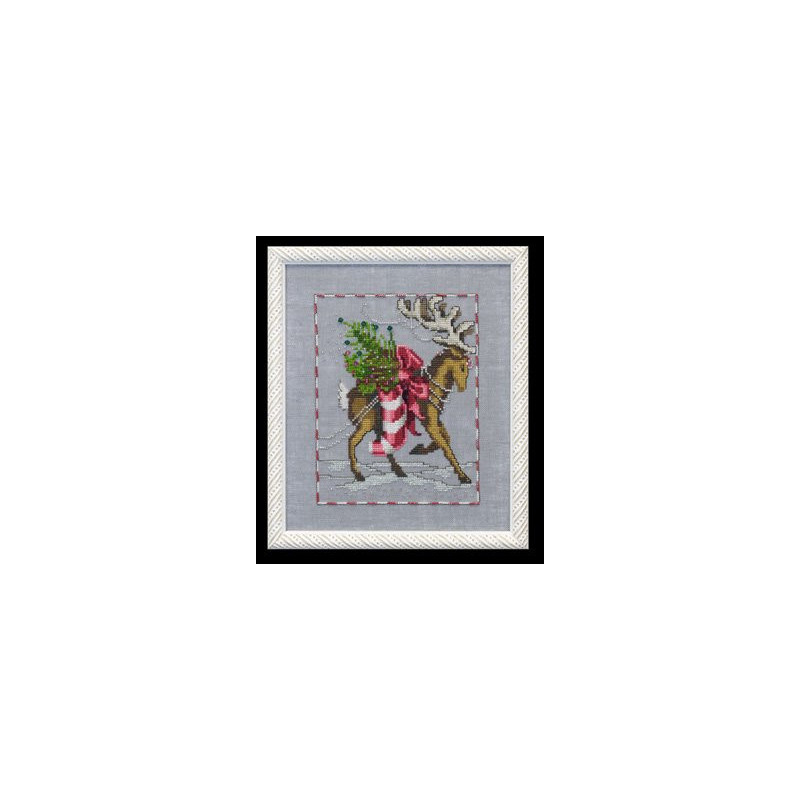 L'article 'Mirabilia Nora Corbett, grille Prancer Christmas Eve Couriers (NC119)' fait partie de notre assortiment depuis le 7 novembre 2008. Mirabilia est un très belle gamme américaine de grands modèles de points de croix comptés, dessins créés par Nora Corbett. Ils représentent essentiellement des fées, elfes et élégantes dames. Presque chaque modèle nécessite des perles de la maison Mill Hill et parfois des fils Kreinik et/ou Caron. Nous vous obtenons rapidement aussi ces accessoires s'ils ne sont pas de stock. Pour l'instant, nous avons précisé sur le site les perles et fils nécessaires aux modèles de stock. Pour les autres, en attendant que nous le fassions, vous trouvez facilement ces indications sur www.mirabilia.com en recherchant le numéro du modèle. Nous vous communiquons volontiers une fourchette de prix pour les accessoires. Merci de faire attention à ce "détail" car il n'en est plus un lorsqu'il y a plusieurs paquets de perles, plusieurs fils différents ... et cela doit être pris en compte dans le prix de revient ... Fiche technique : points de croix - quelques demi-points, perles et fils métallisés. Pas de difficulté particulière ... mais quelques modèles sont complexes par la quantité de perles et les fils métallisés, et demandent un fin doigté. La trame utilisée le plus souvent est le lin 11 fils/cm, et sa teinte bien choisie rehaussera le modèle.