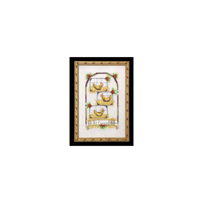 L'article 'Mirabilia Nora Corbett, grille 3 Poules (NC143)' fait partie de notre assortiment depuis le 23 janvier 2010. Mirabilia est un très belle gamme américaine de grands modèles de points de croix comptés, dessins créés par Nora Corbett. Ils représentent essentiellement des fées, elfes et élégantes dames. Presque chaque modèle nécessite des perles de la maison Mill Hill et parfois des fils Kreinik et/ou Caron. Nous vous obtenons rapidement aussi ces accessoires s'ils ne sont pas de stock. Pour l'instant, nous avons précisé sur le site les perles et fils nécessaires aux modèles de stock. Pour les autres, en attendant que nous le fassions, vous trouvez facilement ces indications sur www.mirabilia.com en recherchant le numéro du modèle. Nous vous communiquons volontiers une fourchette de prix pour les accessoires. Merci de faire attention à ce "détail" car il n'en est plus un lorsqu'il y a plusieurs paquets de perles, plusieurs fils différents ... et cela doit être pris en compte dans le prix de revient ... Fiche technique : points de croix - quelques demi-points, perles et fils métallisés. Pas de difficulté particulière ... mais quelques modèles sont complexes par la quantité de perles et les fils métallisés, et demandent un fin doigté. La trame utilisée le plus souvent est le lin 11 fils/cm, et sa teinte bien choisie rehaussera le modèle.
