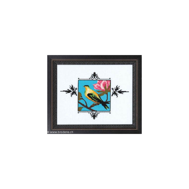 L'article 'Mirabilia Nora Corbett, grille Yellow Figbird (NC187)' fait partie de notre assortiment depuis le 22 janvier 2014. Mirabilia est un très belle gamme américaine de grands modèles de points de croix comptés, dessins créés par Nora Corbett. Ils représentent essentiellement des fées, elfes et élégantes dames. Presque chaque modèle nécessite des perles de la maison Mill Hill et parfois des fils Kreinik et/ou Caron. Nous vous obtenons rapidement aussi ces accessoires s'ils ne sont pas de stock. Pour l'instant, nous avons précisé sur le site les perles et fils nécessaires aux modèles de stock. Pour les autres, en attendant que nous le fassions, vous trouvez facilement ces indications sur www.mirabilia.com en recherchant le numéro du modèle. Nous vous communiquons volontiers une fourchette de prix pour les accessoires. Merci de faire attention à ce "détail" car il n'en est plus un lorsqu'il y a plusieurs paquets de perles, plusieurs fils différents ... et cela doit être pris en compte dans le prix de revient ... Fiche technique : points de croix - quelques demi-points, perles et fils métallisés. Pas de difficulté particulière ... mais quelques modèles sont complexes par la quantité de perles et les fils métallisés, et demandent un fin doigté. La trame utilisée le plus souvent est le lin 11 fils/cm, et sa teinte bien choisie rehaussera le modèle.