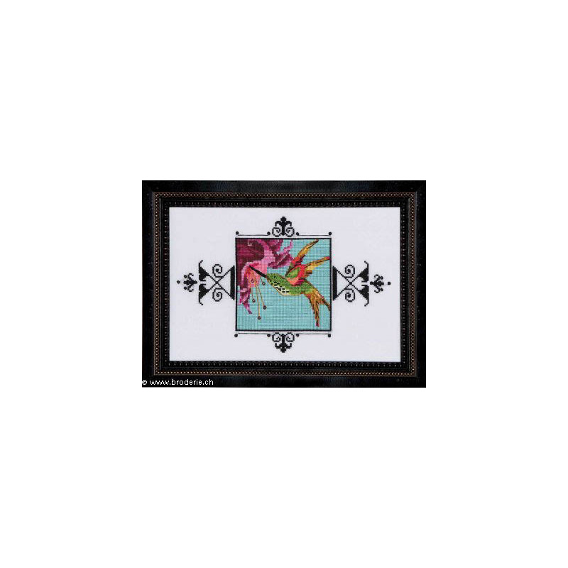L'article 'Mirabilia Nora Corbett, grille Hummingbird (NC185)' fait partie de notre assortiment depuis le 22 janvier 2014. Mirabilia est un très belle gamme américaine de grands modèles de points de croix comptés, dessins créés par Nora Corbett. Ils représentent essentiellement des fées, elfes et élégantes dames. Presque chaque modèle nécessite des perles de la maison Mill Hill et parfois des fils Kreinik et/ou Caron. Nous vous obtenons rapidement aussi ces accessoires s'ils ne sont pas de stock. Pour l'instant, nous avons précisé sur le site les perles et fils nécessaires aux modèles de stock. Pour les autres, en attendant que nous le fassions, vous trouvez facilement ces indications sur www.mirabilia.com en recherchant le numéro du modèle. Nous vous communiquons volontiers une fourchette de prix pour les accessoires. Merci de faire attention à ce "détail" car il n'en est plus un lorsqu'il y a plusieurs paquets de perles, plusieurs fils différents ... et cela doit être pris en compte dans le prix de revient ... Fiche technique : points de croix - quelques demi-points, perles et fils métallisés. Pas de difficulté particulière ... mais quelques modèles sont complexes par la quantité de perles et les fils métallisés, et demandent un fin doigté. La trame utilisée le plus souvent est le lin 11 fils/cm, et sa teinte bien choisie rehaussera le modèle.